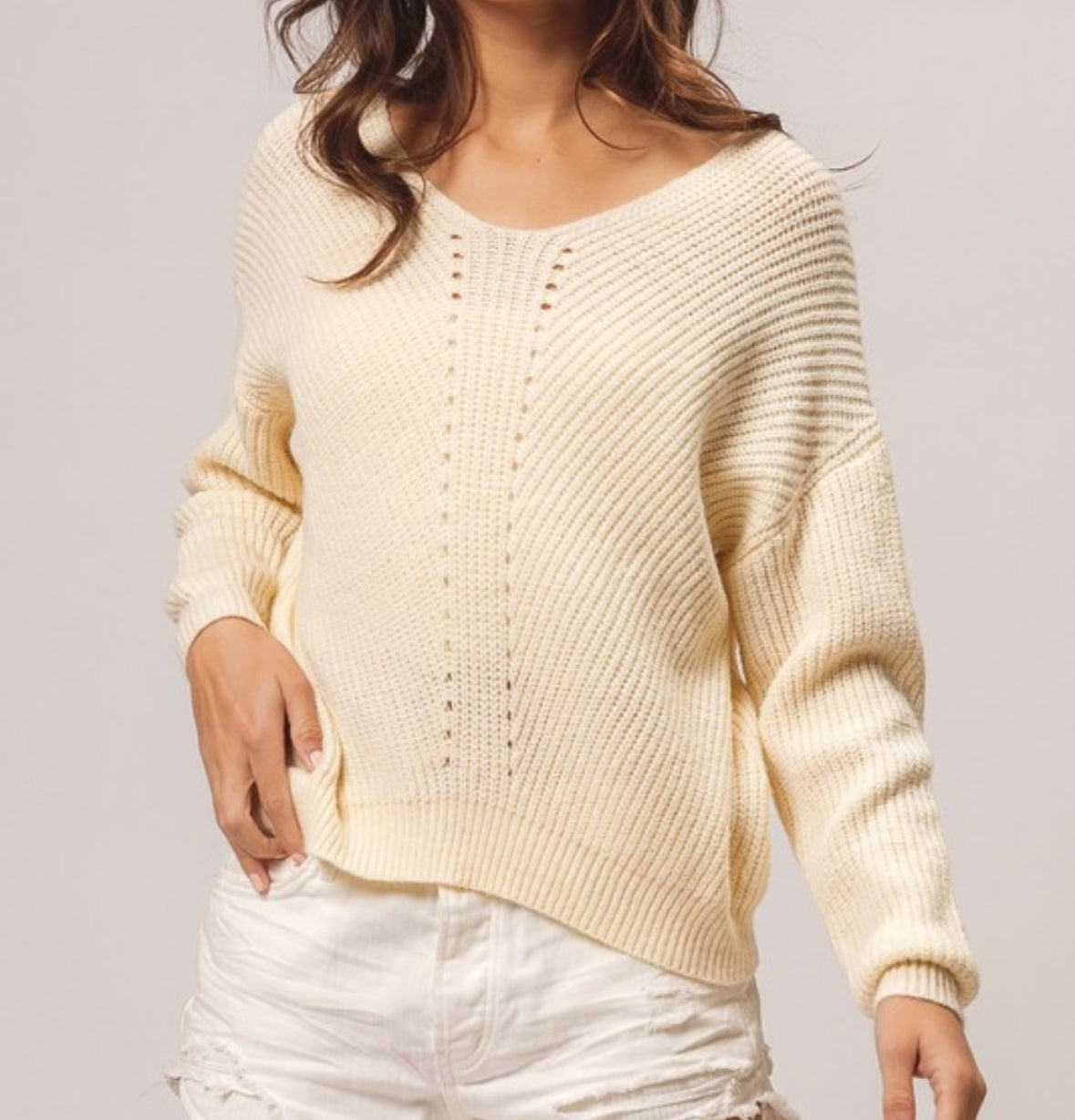 Cream Knit V - Neck Sweater