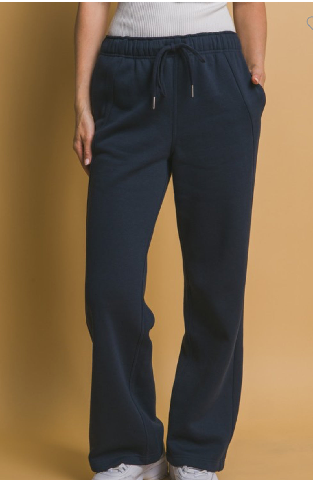 Navy Elastic Drawstring Wide Leg Sweatpants