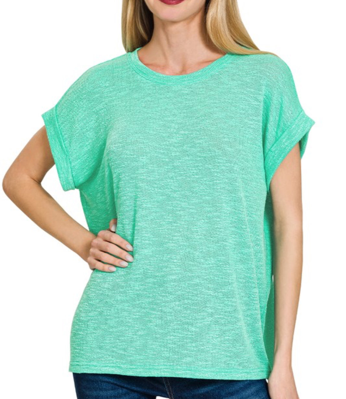 Turquoise Hacci Rolled Sleeve Relaxed Tee